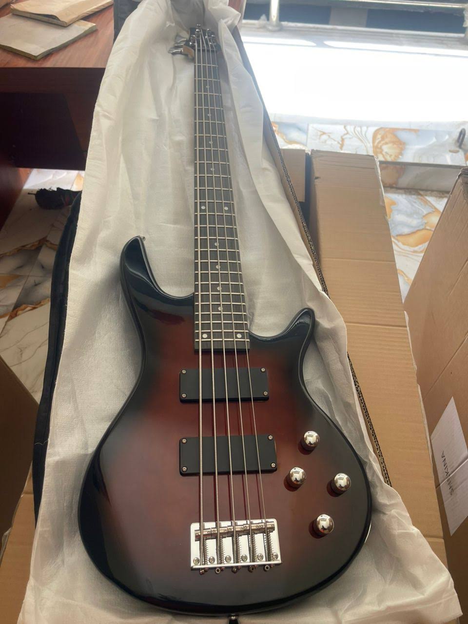 Professional 5-string electric bass guitar delivering deep, powerful bass tones for live performances, studio recording, church use, and band practice.